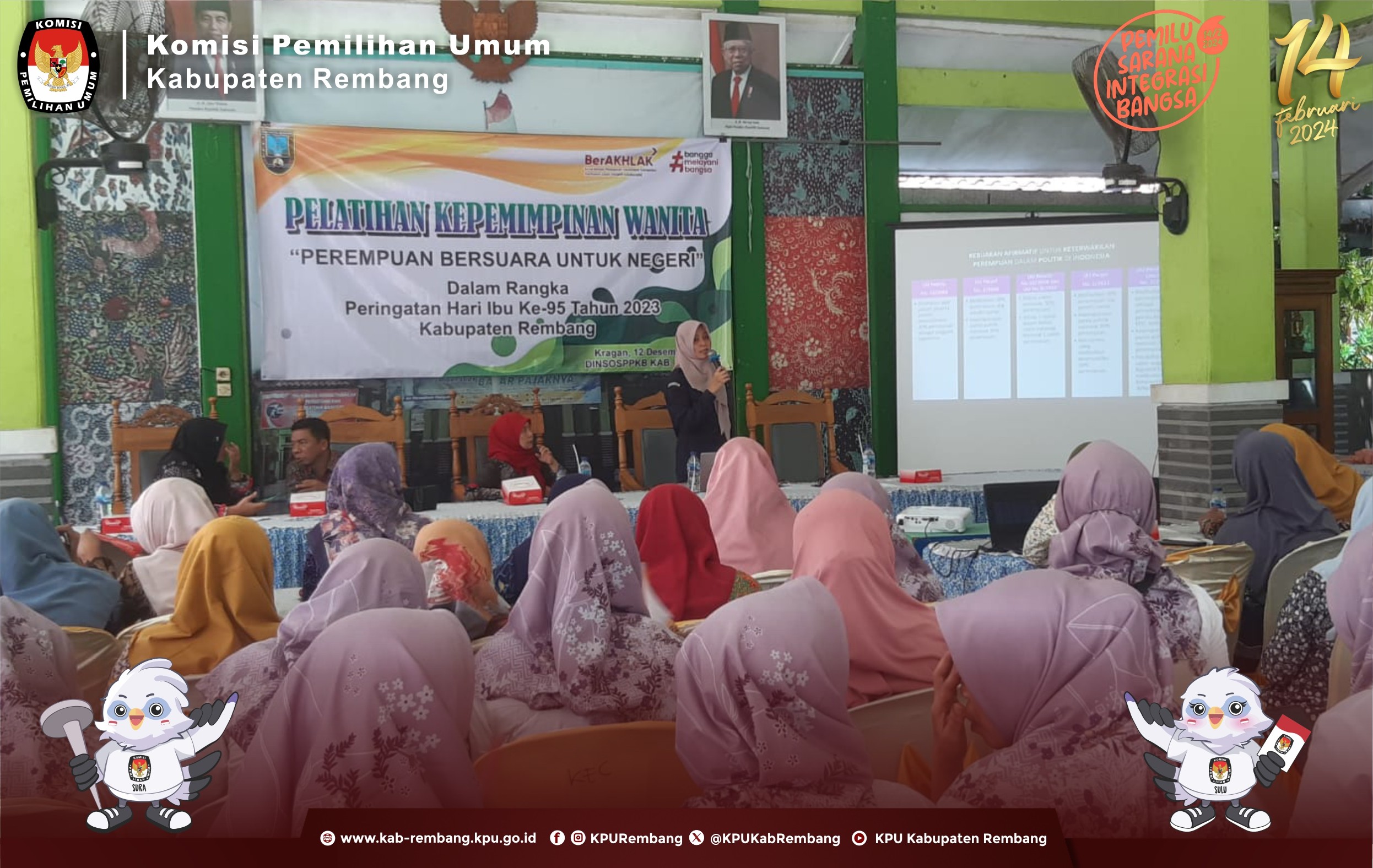 #TemanPemilih Anggota KPU Kabupaten Rembang Divisi Teknis Penyelenggaraan Pemilu, Maskutin sebagai narasumber dalam pelatihan kepemimpinan wanita bertajuk "Perempuan Bersuara untuk Negeri" penuhi undangan Nomor 400.2.2/1313/2023 dari Dinas Sosial Pemberdayaan Perempuan dan Keluarga Berencana Kabupaten Rembang, Pamotan (13/12/2023)