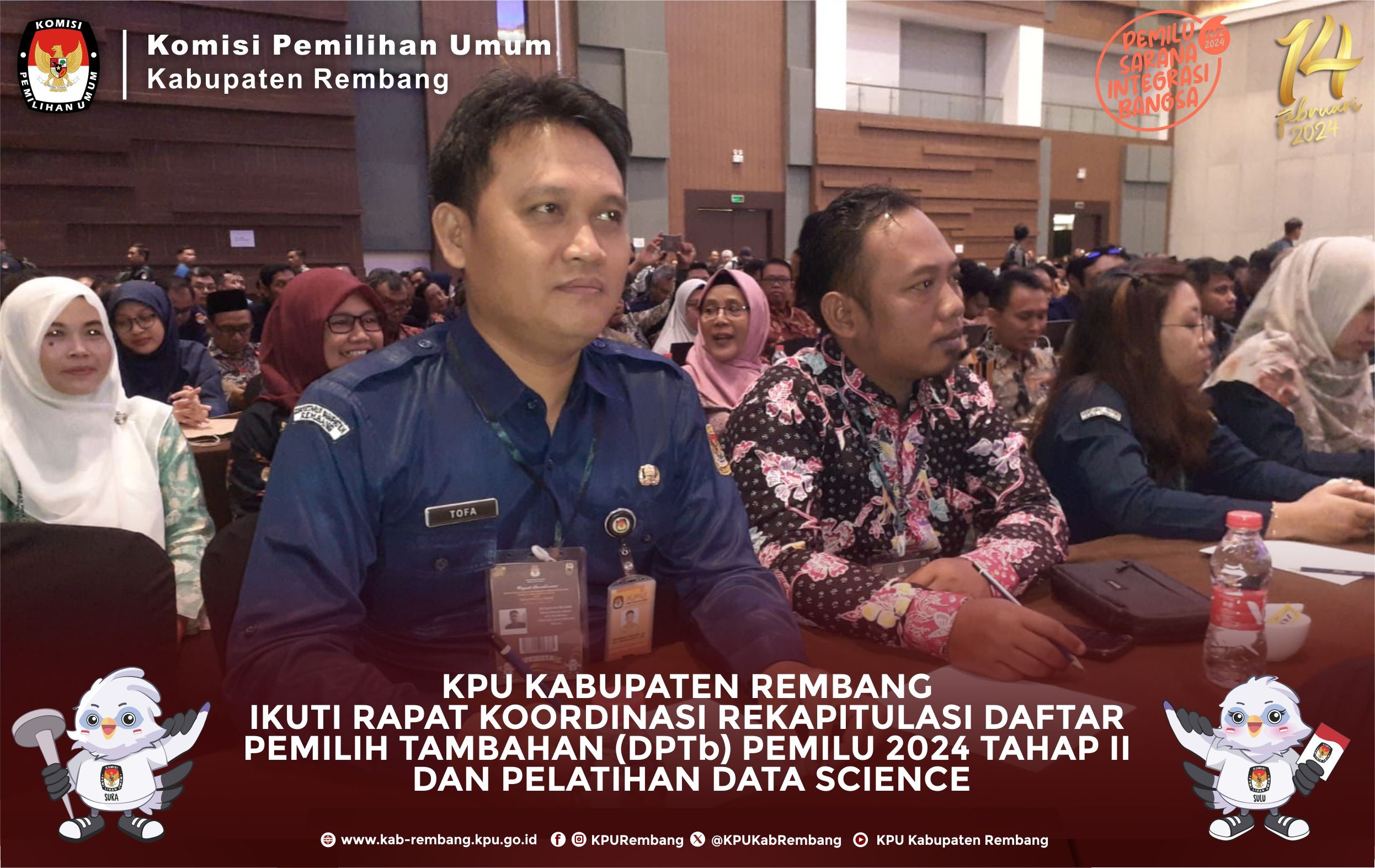 Makasar - KPU Kabupaten Rembang mengikuti Rapat Koordinasi Rakapitulasi Daftar Pemilih Tambahan (DPTb) Pemilu Tahun 2024 Tahap II dan Pelatihan Data Science yang diselenggarakan di Makasar pada tanggal 10-11 November 2023. Rapat koordinasi tersebut dihadiri oleh Anggota KPU Kabupaten Rembang divisi Perencanaan Data Informasi, Sakdulah, dan Admin Sidalih, M. Mustofa. Rapat koordinasi ini bertujuan untuk membahas persiapan dan pelaksanaan tahap II rakapitulasi DPTb Pemilu Tahun 2024 serta memastikan bahwa proses tersebut berjalan dengan lancar dan sesuai dengan ketentuan yang berlaku. Selain itu, pelatihan data science juga menjadi fokus dalam acara ini, dimana para peserta diajarkan tentang penggunaan teknologi dan analisis data dalam konteks pemilihan umum. Kehadiran KPU Kabupaten Rembang dalam acara ini menunjukkan komitmen mereka dalam meningkatkan kualitas dan efisiensi dalam proses pemilihan umum. Dengan mengikuti rapat koordinasi dan pelatihan ini, diharapkan KPU Kabupaten Rembang dapat memperoleh pengetahuan dan keterampilan baru yang dapat diterapkan dalam tugas-tugas mereka ke depan, sehingga pemilu Tahun 2024 dapat berjalan dengan baik dan transparan. #kpumelayani #pemiluserentak2024 #TemanPemilih