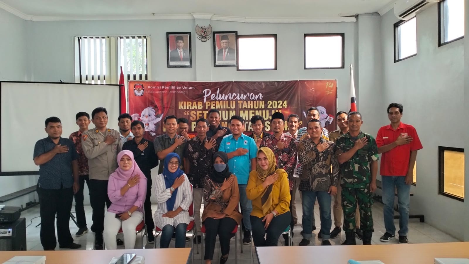 kab-rembang.kpu.go.id-Komisi Pemilihan Umum Kabupaten Rembang hari ini Laksanakan Nonton Bersama Peluncuran Kirab Pemilu 2024 dengan tema pemilu sebagai sarana integrasi bangsa di Kantor KPU Kabupaten Rembang bersama seluruh elemen masyarakat dan forkopimda (14/2). Nonton bersama yang dilaksanakan melalui kanal YouTube KPU RI ini diikuti oleh puluhan peserta, di antaranya: Perwakilan dari Pemerintah Daerah Kabupaten Rembang, Polres Rembang dan Kodim 0720Rembang Organisasi Masyarakat , Partai Politik, Pimpinan Universitas, dan Badan Eksekutif Mahasiswa, dll. Adapun yang hadir dalam kegiatan ini dari KPU Kabupaten Rembang Ketua KPU Rembang Anggota KPU Rembang , dan Seluruh Jajaran Sekretariat KPU Kabupaten Rembang Ketua KPU Rembang menyatakan, kita sangat berharap dengan rangkaian kegiatan ini, masyarakat bisa sepenuhnya mendukung pelaksanaan pemilu yang akan dilaksanakan setahun lagi," ucap Iqbal saat pembukaan. Dalam sambutan ketua KPU Rembang mengatakan salah satu tujuan kirab nasional ini untuk menyosialisasikan penyelenggaraan Tahapan Pemilu Tahun 2024 supaya pandangan masyarakat terhadap pemilu dapat hilang. Kegiatan Kirab Pemilu 2024 yang digagas KPU RI dilaksanakan pada delapan titik daerah di seluruh Indonesia. Di antaranya berada di kantor KPU, Komisi Independen Pemilihan (KIP) Aceh, KPU Kota Batam, KPU Provinsi Kalimantan Barat, KPU Provinsi Kalimantan Utara, KPU Kabupaten Pulau Morotai, KPU Provinsi Nusa Tenggara Timur, hingga berada di ujung Timur Indonesia, KPU Provinsi Papua. Momentum ini sekaligus dimanfaatkan KPU sebagai sarana sosialisasi dan pendidikan pemilih kepada masyarakat. Rangkaian acara peluncuran juga dimeriahkan dengan penampilan seni adat dan budaya daerah. (Humas KPU Kabupaten Rembang)