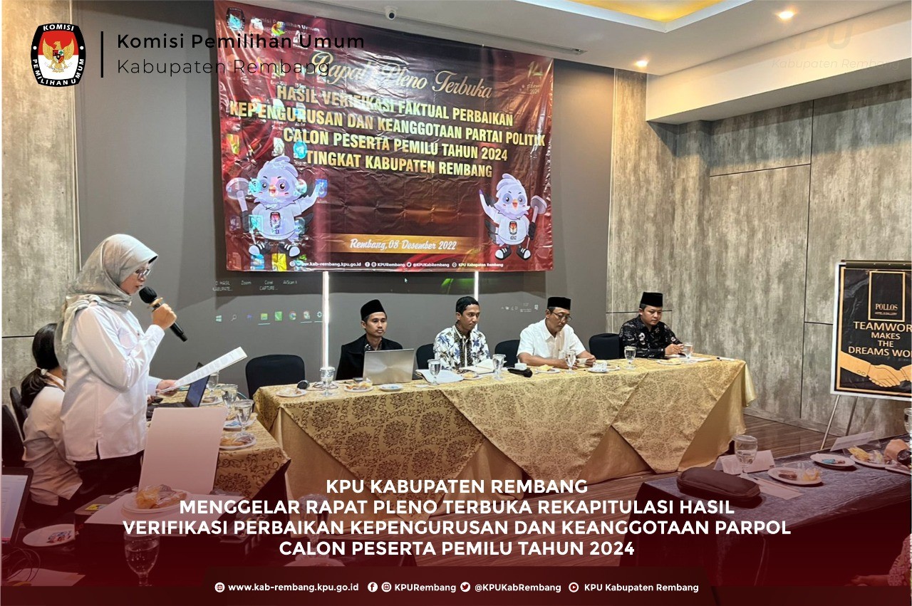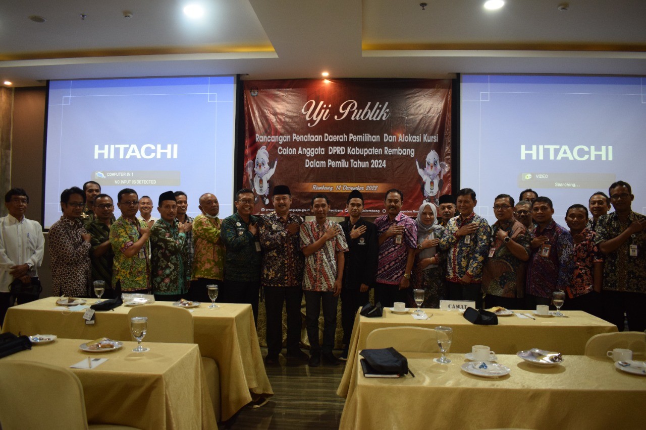 kab-rembang.kpu.go.id-KPU Kabupaten Rembang menggelar Uji Publik Rancangan Penataan Daerah Pemilihan dan Alokasi Kursi Dewan Perwakilan Rakyat Daerah (DPRD) Kabupaten Rembang dalam Pemilu 2024 mendatang, di Hotel Pollos (14/12). Kegiatan ini dibagi menjadi dua sesi, pada sesi pertama dihadiri oleh Polres, Kodim, Bakesbangpol, Ormas dan Perwakilan Partai Politik di Kabupaten Rembang. Kemudian sesi kedua dihadiri oleh Semua Camat, OPD, Akademisi, Tokoh Masyarakat, dan Perwakilan PWI di Kabupaten Rembang. Pada dua sesi ini, Ketua KPU Kabupaten Rembang M. Ika Iqbal Fami menjelaskan, dasar hukum kegiatan itu salah satunya Keputusan KPU Nomor 488 Tahun 2022, tentang Pedoman Teknis Penataan Dapil dan Alokasi Kursi Anggota DPRD Kabupaten/Kota dalam Pemilu. Saat ini KPU telah memasuki tahapan penataan dapil dan penataan alokasi kursi untuk pemilihan DPRD Kabupaten/Kota dalam Pemilu 2024. Untuk diketahui, dapil atau daerah pemilihan merupakan batas wilayah/area bagi calon peserta pemilu DPRD berkompetisi dalam Pemilu. “Maka uji publik penting dilaksanakan, untuk menghimpun masukan dan tanggapan dari para pemangku kepentingan terkait,”tegasnya. Divisi Teknis, Zaenal Arifin menerangkan, penataan Dapil meliputi beberapa prinsip, yakni kesetaraan nilai suara, ketaatan pada sistem pemilu yang proposional, integritas wilayah, berada dalam cakupan wilayah yang sama, kohesivitas, dan kesinambungan. Kemudian, ketentuan dalam penataan dapil, antara lain dapil anggota DPRD Kabupaten/Kota adalah kecamatan atau gabungan kecamatan, atau bagian kecamatan, di mana alokasi kursi setiap Dapil paling sedikit tiga dan paling banyak 12 (district Magnitude Besar). Jumlah kursi anggota DPRD Kabupaten/Kota ditetapkan paling sedikit 20 kursi dan paling banyak 55 kursi, serta memperhatikan prinsip penataan Dapil. Kemudian pada dua sesi, KPU membuka ruang diskusi dan meminta tanggapan terkait rancangan dapil di Kabupaten Rembang. (Humas KPU Kabupaten Rembang)