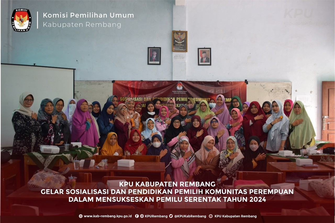 kab-rembang.kpu.go.id-Memasuki tahapan Pemilu Serentak 2024, KPU Kabupaten Rembang menggelar Sosialisasi Pendidikan Pemilih Komunitas Perempuan Untuk Mensukseskan Pemilu 2024 di SMK Muhammadyah Pamotan (26/11) Sosialisasi ini dihadiri oleh Divisi Perencanaan Data dan Informasi, Maskutin dan Wiwin Winarti selaku narasumber serta perwakilah dari Muhammadiyah Aisyiyah sebagai peserta. Maskutin dalam sambutannya mengatakan bahwa Pemilihan Umum agenda demokrasi di Indonesia yang sudah berlangsung rutin lima tahun sekali, tahapan Pemilu tahun 2024 saat ini pada tahapan verifikasi administrasi parpol calon peserta Pemilu 2024. Dalam Pemilu salah satu pemilih adalah perempuan yang dari sisi jumlah besar dan menjadi pemilih potensial. “Sosialisasi sebagai hal penting dalam pelaksanaan Pemilu dan Pemilihan, perempuan sangat strategis untuk menyampaikan sosialisasi sehingga menjadi sasaran penting dalam sosialisasi, mempunyai kemampuan menyampaikan informasi dengan sangat baik dan cepat,”ujarnya Selanjutnya narasumber menyampaikan ajakan perempuan untuk berpartisipasi dalam Pemilu 2024 nantinya. “Oleh karenanya penting sekali bagi perempuan untuk menjadi pemilih rasional mencermati sebelum menentukan pilihan politik.” Kata Wiwin Acara ditutup dengan diskusi dan foto bersama dengan peserta. (Humas KPU Kabupaten Rembang)