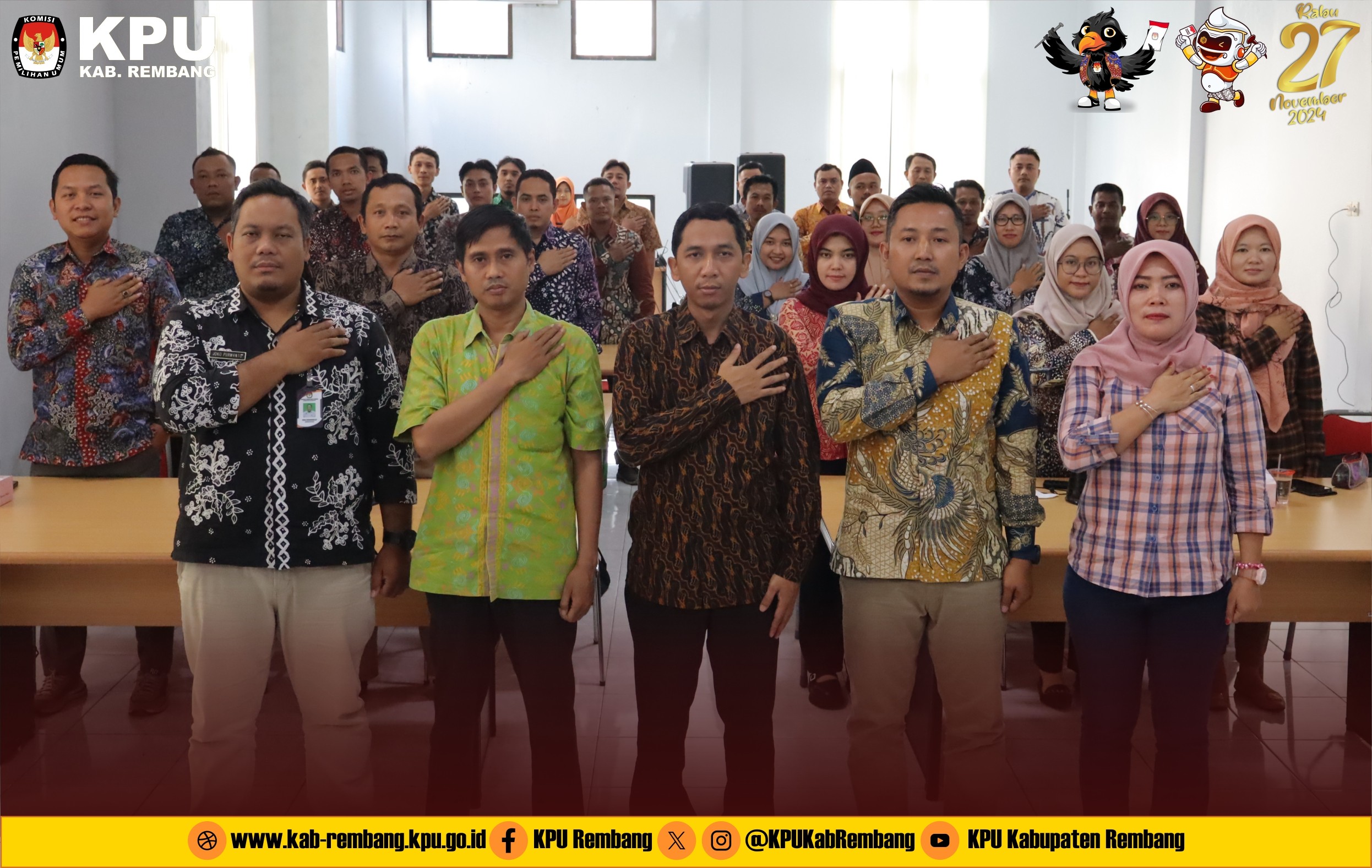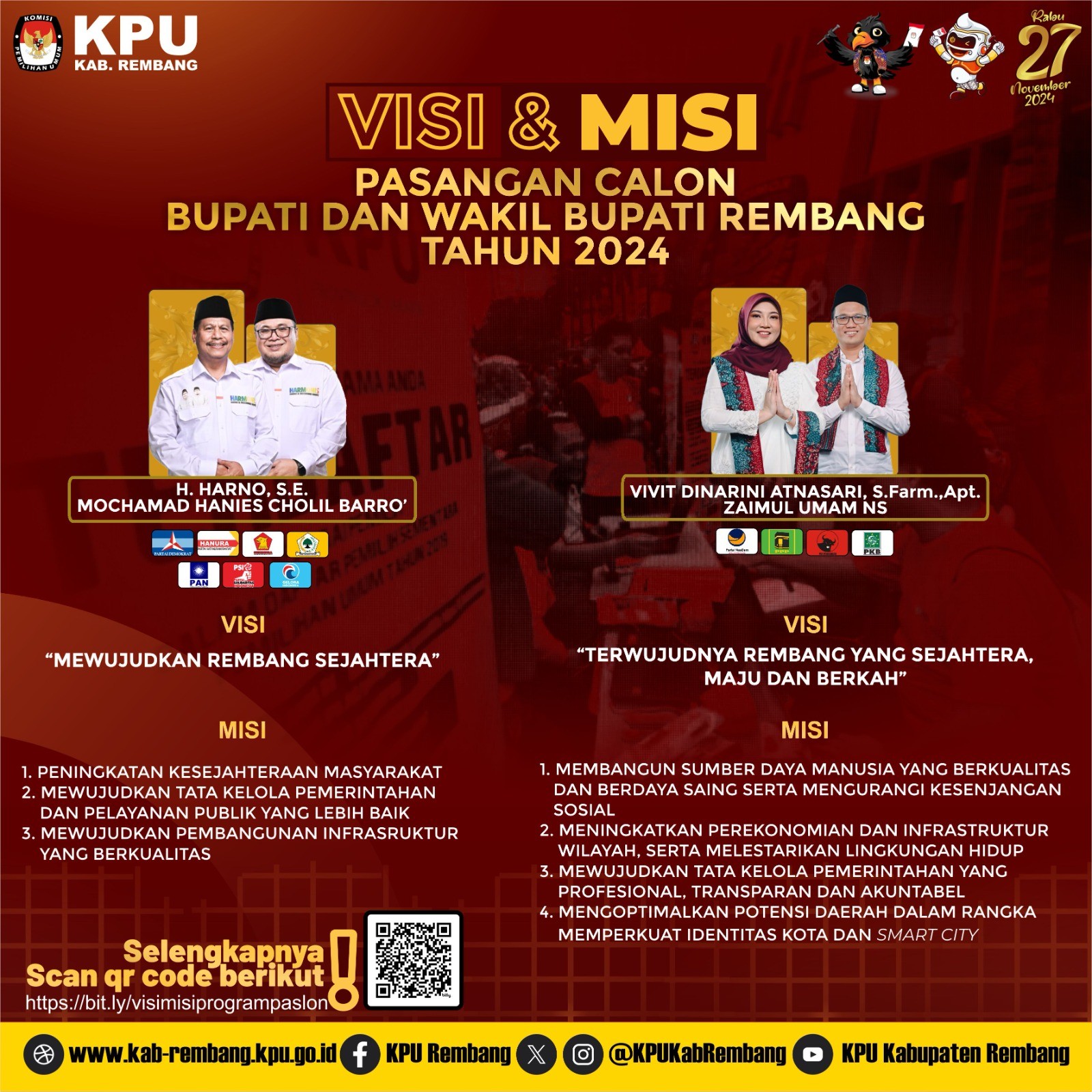 #TemanPemilih, Kamis (29/8/2023), KPU Kabupaten Rembang menerima pendaftaran Pasangan Calon Bupati dan Wakil Bupati Harno dan Hanies Cholil Barro' yang didaftarkan pada pukul 19.38 WIB oleh 7 (Tujuh) Gabungan Partai Politik.