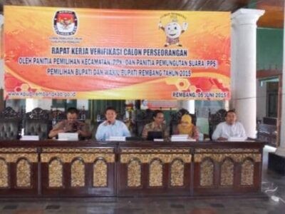 Pada acara tersebut KPU Kabupaten Rembang melakukan verifikasi administrasi dokumen meliputi kelengkapan dokumen dan keabsahan dokumen. Kelengkapan dokumen meliputi jenis dokumen yang harus diserahkan yaitu : surat pernyataan dukungan (Model B.1. KWK Perseorangan), Fotokopi KTP/ identitas kependudukan lain yang dibuat dalam 3 (tiga) rangkap, 1 (satu) asli dan 2 (dua) salinan dan softfilenya serta rekapitulasi jumlah dukungan (Model B.2. KWK Perseorangan).