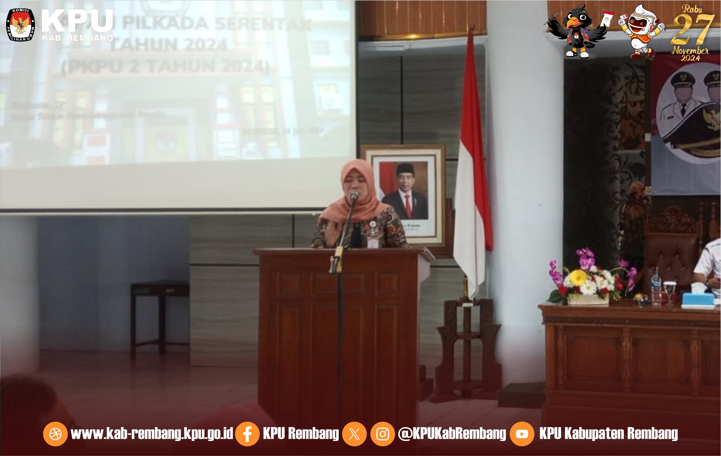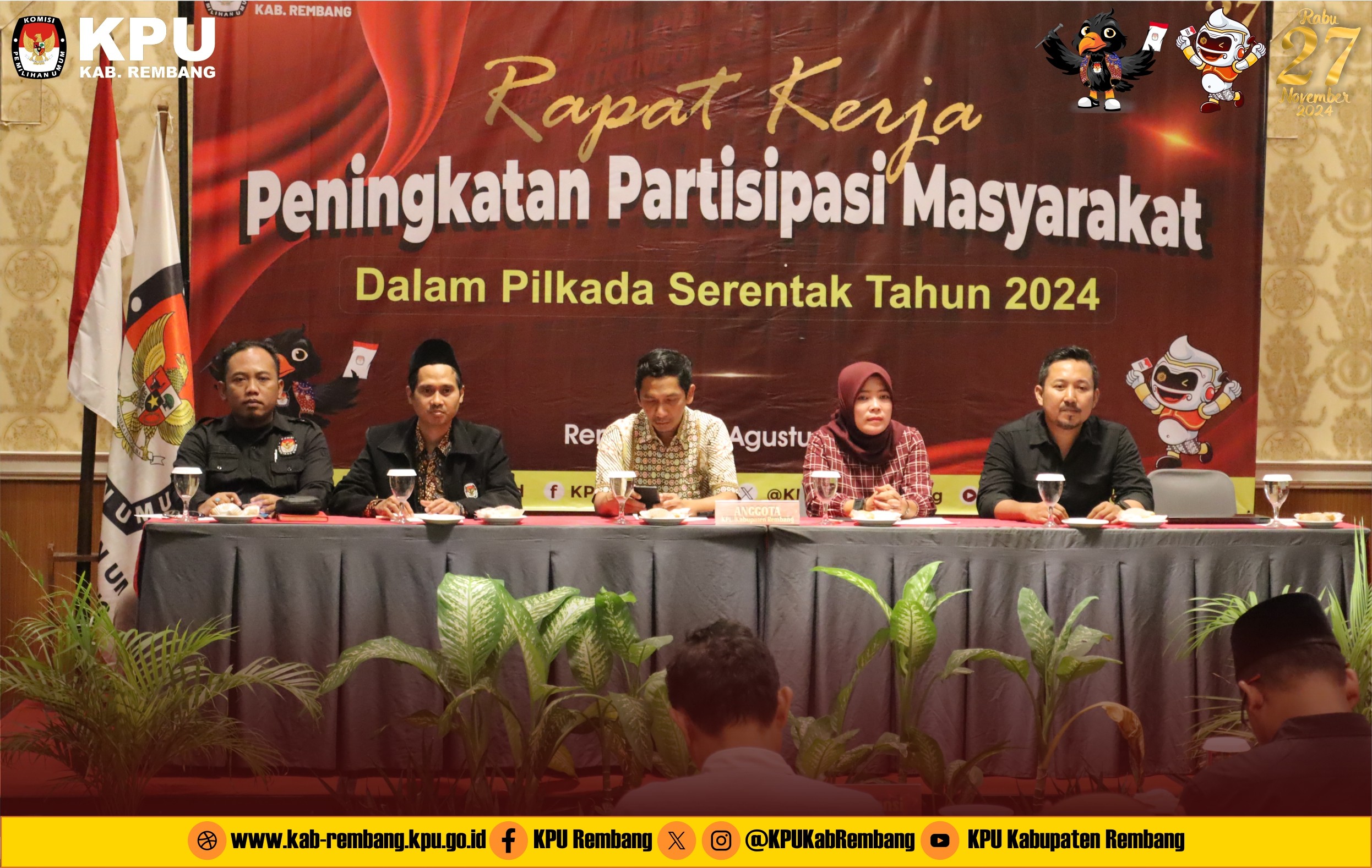 #TemanPemilih Kamis (1/8/2024), KPU Kabupaten Rembang menggelar Rapat Kerja Peningkatan Partisipasi Masyarakat dalam Pilkada Serentak tahun 2024. Rapat tersebut dihadiri oleh Perwakilan Bakesbangpol Kabupaten Rembang, Ketua dan Anggota PPK Divisi Sosdiklih, Parmas, Hukum & SDM se-Kabupaten Rembang. Acara yang diadakan di Fave Hotel Rembang ini menjadi ajang diskusi untuk membahas strategi yang akan dilakukan guna meningkatkan partisipasi masyarakat dalam proses Pilkada Serentak Tahun 2024 yang akan datang. Materi yang disampaikan dalam rapat ini berasal dari Ketua dan 4 Anggota KPU Kabupaten Rembang yang memiliki pengalaman dan pengetahuan dalam bidangnya masing-masing. Mereka berbagi wawasan dan ide-ide untuk meningkatkan kesadaran masyarakat terhadap pentingnya peran serta dalam proses demokrasi di Kabupaten Rembang. Diharapkan melalui kegiatan ini, partisipasi masyarakat dalam Pilkada Serentak tahun 2024 dapat meningkat dan memberikan kontribusi positif bagi pembangunan demokrasi di Kabupaten Rembang. KPU Kabupaten Rembang terus berkomitmen untuk mengedukasi masyarakat dan menciptakan lingkungan yang kondusif untuk pelaksanaan Pilkada yang berkualitas. #KPUMelayani