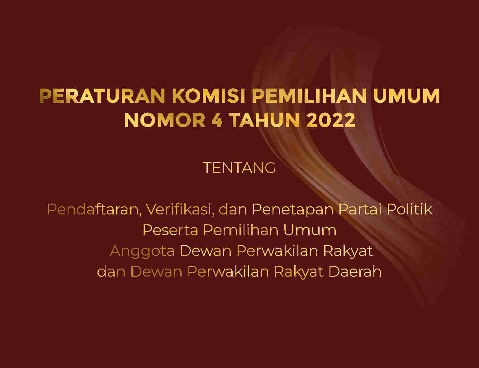 Peraturan Komisi Pemilihan Umum Nomor 4 Tahun 2022 tentang Pendaftaran, Verifikasi, dan Penetapan Partai Politik Peserta Pemilihan Umum Anggota Dewan Perwakilan Rakyat dan Dewan Perwakilan Rakyat Daerah