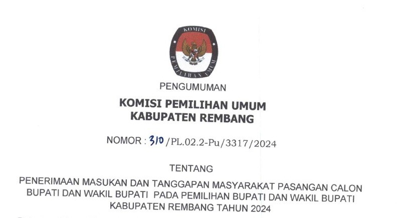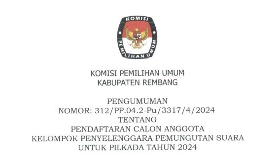 #TemanPemilih Dalam rangka pembentukan KPPS untuk Pemilihan Gubernur dan Wakil Gubernur Jawa Tengah serta Bupati dan Wakil Bupati Rembang Tahun 2024, Komisi Pemilihan Umum Kabupaten Rembang mengundang Warga Negara Indonesia yang memenuhi persyaratan untuk mendaftarkan diri menjadi anggota KPPS untuk Pilkada Tahun 2024 dengan ketentuan sebagai berikut: