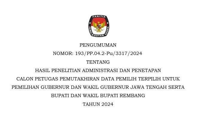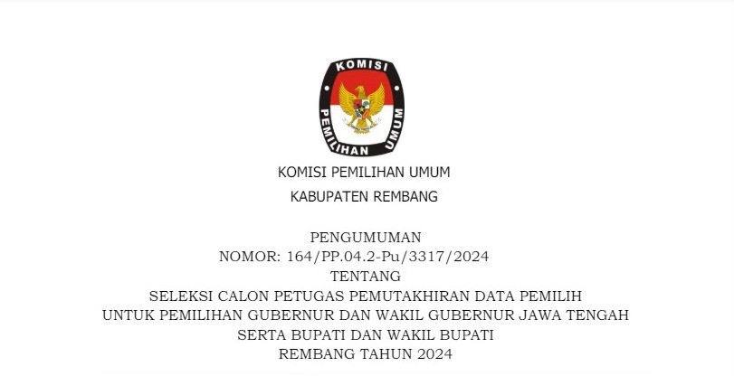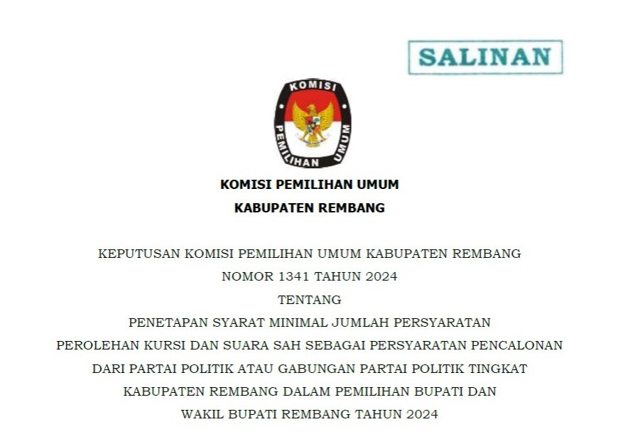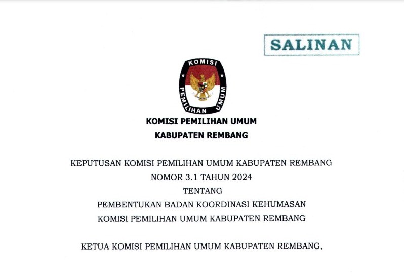 #TemanPemilih untuk meningkatkan peranan dan fungsi koordinasi Kehumasan antara Komisi Pemilihan Umum Kabupaten Rembang dengan Komisi Pemilihan Umum Republik Indonesia, Komisi Pemilihan Umum Provinsi, Komisi Pemilihan Umum Kabupaten/Kota serta instansi/lembaga Pemerintah Daerah dan/atau pemangku kepentingan lainnya yang membidangi Kehumasan/lnformasi Publik, berikut adalah keputusan Komisi Pemilihan Umum Nomor 3.1 tentang Pembentukan Badan Koordinasi Kehumasan Komisi Pemilihan Umum Kabupaten Rembang.